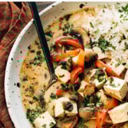 We also love a good go-with-the-flow meal and this soup IS that. It is super versatile, so you can customize it to whatever you fancy. Not a tofu fan? No prob – chicken or shrimp would be outstanding. Want a bunch of other vegetables in there because, oh no, you got overzealous in the produce aisle this week? Great, toss them in!